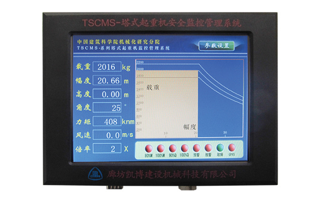 實(shí)時(shí)顯示監(jiān)控塔機(jī)高度、幅度、起重量、回轉(zhuǎn)角度、環(huán)境風(fēng)速及倍率等工作信息,對(duì)危險(xiǎn)動(dòng)作提供預(yù)警報(bào)警及控制輸出。