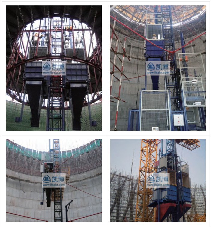 可實現人員、鋼筋、混凝土的垂直運輸;可外掛長度可變平臺,實現人員、物料的水平運輸。廣泛應用于煙囪、水塔、及其他異型建筑。