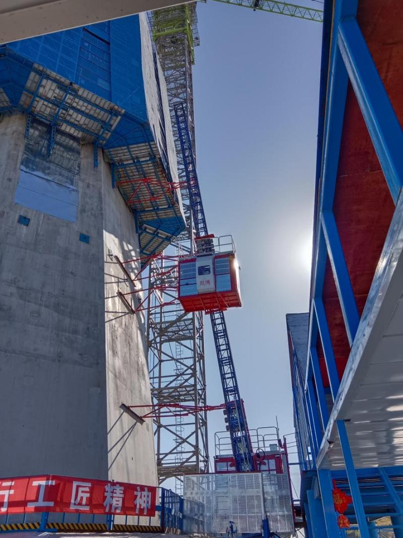 廊坊凱博建設機械科技有限公司根據枝江百里洲長江大橋的外形和具體施工要求,提供了SC200型斜直兩用施工升降機設備。該型升降機適用于外立面呈異型或變斜度大的橋塔、煙囪等建筑物施工中,在不增加任何部件的情況下可滿足在不同斜度建筑物的使用要求,能做到在0~15°之間任意變換角度,具有良好的適應性。
