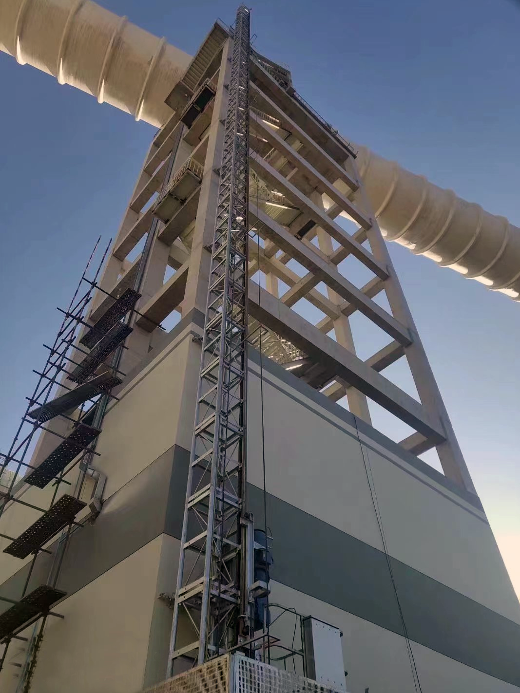 廊坊凱博建設(shè)機(jī)械科技有限公司(以下簡(jiǎn)稱:凱博科技)是中國(guó)建研院下屬北京建筑機(jī)械化研究院有限公司的全資子企業(yè)(三級(jí)中央企業(yè)),齒輪齒條式工業(yè)升降機(jī)在具有挑戰(zhàn)性的環(huán)境下也能為用戶提供安全可靠、運(yùn)行高效的垂直升降設(shè)備,為工業(yè)設(shè)備的維護(hù)、維修提供快速通道。京秦?zé)犭婍?xiàng)目是國(guó)家鼓勵(lì)發(fā)展的熱電聯(lián)產(chǎn)項(xiàng)目、是城市集中供熱民生工程項(xiàng)目、是促進(jìn)京津冀協(xié)同發(fā)展典型的傳統(tǒng)產(chǎn)業(yè)轉(zhuǎn)型升級(jí)項(xiàng)目。凱博科技提供了兩臺(tái)SC100煙道CEMS平臺(tái)工業(yè)升降機(jī),為檢測(cè)人員到達(dá)煙氣監(jiān)測(cè)平臺(tái)提供便利。